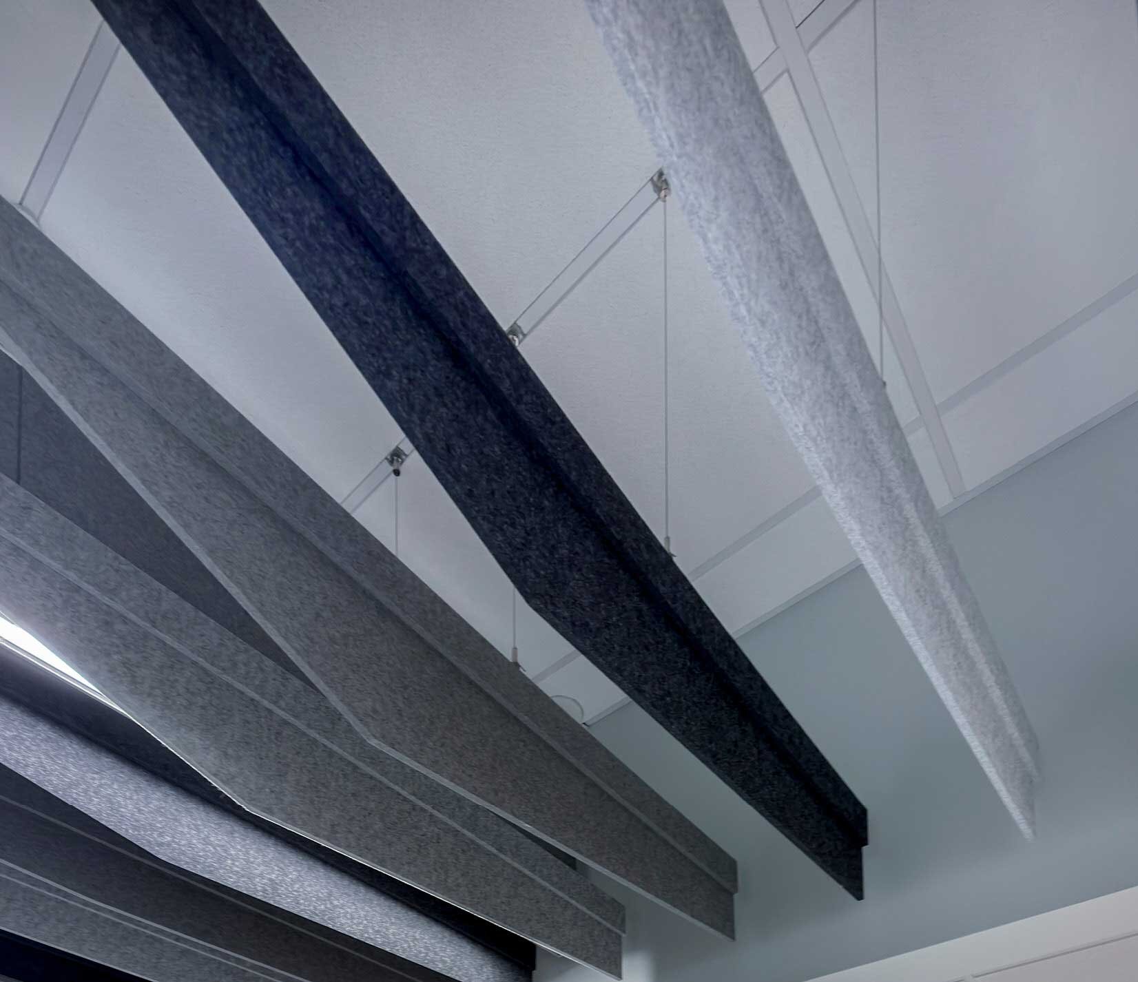 Um die Akustik in Großraumbüros zu optimieren, sollten gezielte Schallabsorber für die Wand, die Decke oder als Raumteiler eingesetzt werden. Diese reduzieren den Schall dort, wo er entsteht und reflektiert wird.